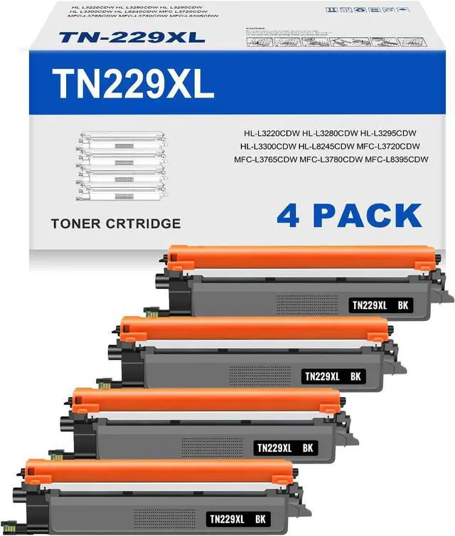 Package Contents: 4 x TN229 XL Black high Yield Replacement for TN229XL toner cartridge