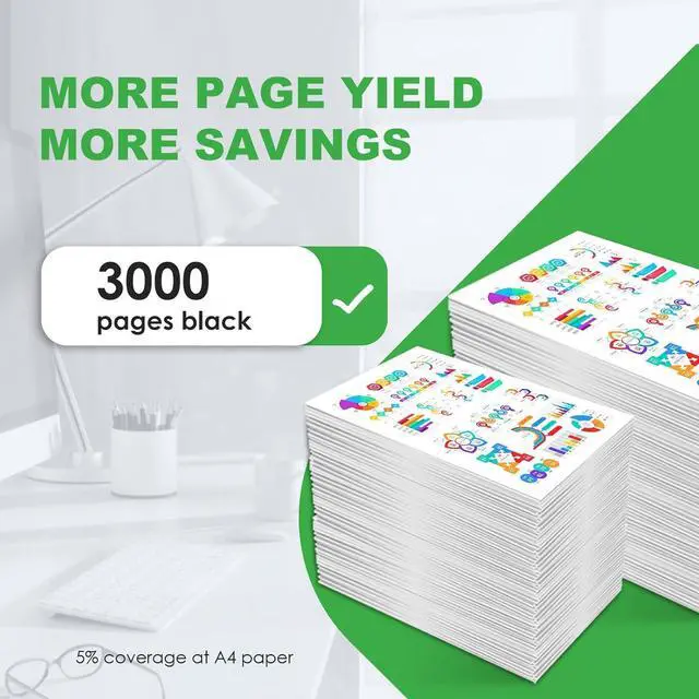 High yield: Up to 3000 pages for black cartridge at 5% coverage (Letter/A4)
