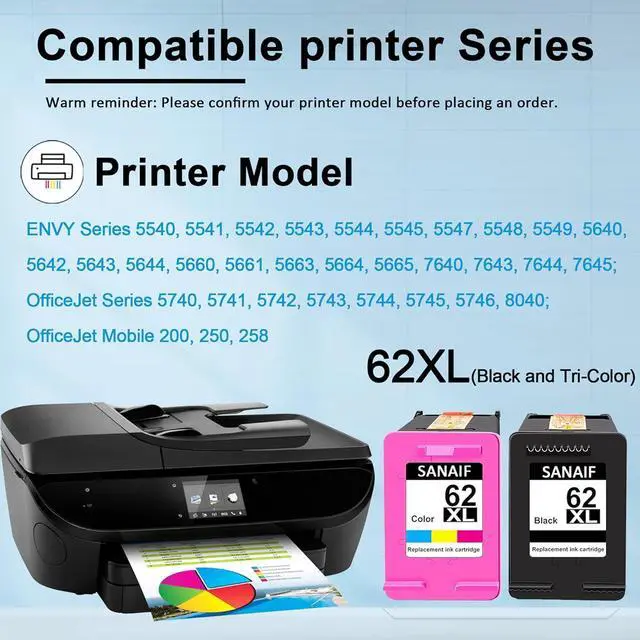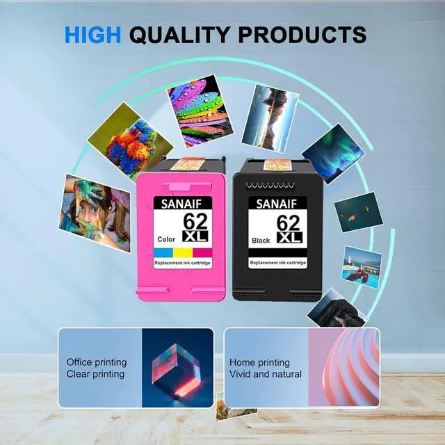 Package Contents: 62XL Ink Cartridges Black and Color Replacment for HP Ink 62XL (1 Black 1 Tri-color, 2-Pack)