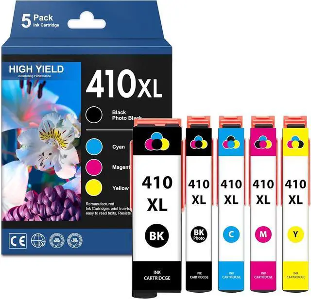 Package Contents1 Pack 410xl Black Ink Cartridge, 1 Pack 410xl Photo Black Ink Cartridge, 3 Pack 410xl Cyan Yellow Magenta Ink Cartridge
