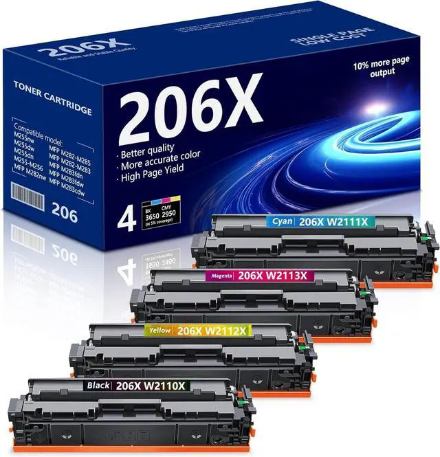 Include: 1x Black 206X W2110X Toner Cartridge, 1x Cyan 206X W2111X Toner Cartridge, 1x Yellow 206X W2112X Toner Cartridge, 1x Magenta 206X W2113X Toner Cartridge
