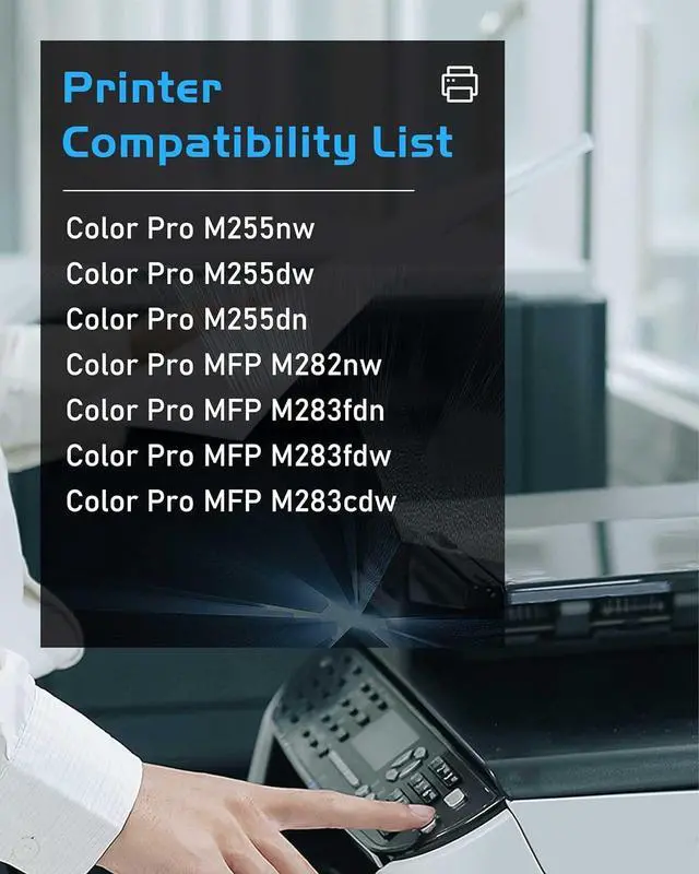 206A 206X Toner Cartridges Printer Compatibility: compatible with HP Color Laser jet Pro MFP M283fdw M283cdw M283fdn M282nw; Color Laser Jet Pro M255nw M255dw printers.