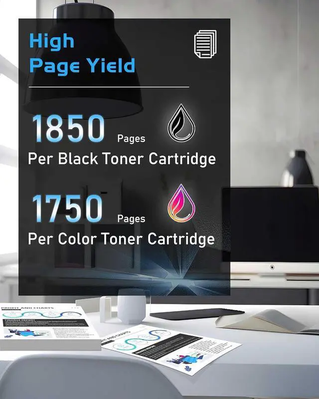 Page Yield: 206A toner cartridges 4 pack high yield up to 1850 pages for 206A toner cartridge black and 1750 pages for 206A color toner cartridge at 5% coverage Letter/A4