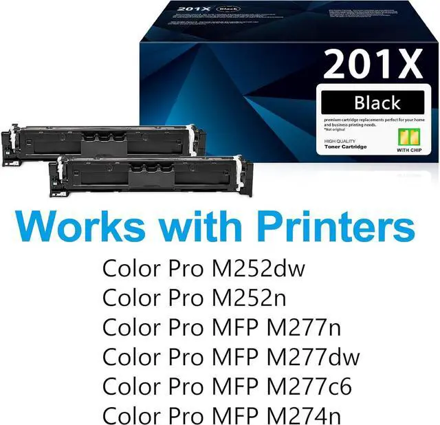 Include: MANDBOY 2-packs 201X high yield (with Chip) toner . It is compatible for HP 201A CF400A 201 201X CF400X black toner cartridges, and suitable for MFP M277dw, M252dw can be quickly recognized by your printer to ensure smooth printing