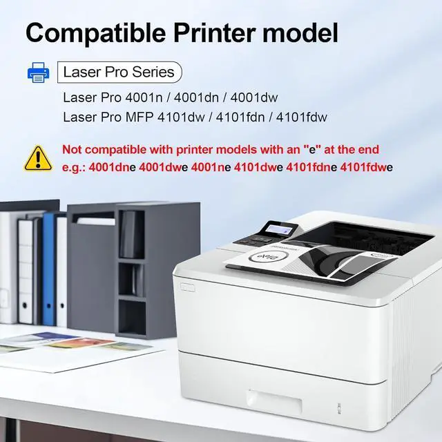 This cartridge works with: Laser Pro 4001dn, 4001dw, 4001n; Laser Pro MFP 4101dw, 4101fdn, 4101fdw Printer