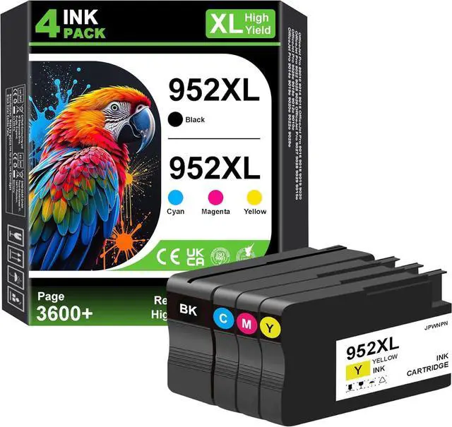 Package Includes: 4-Pack 952XL Ink Cartridge Replacement for HP 952XL Ink (Black, Cyan, Yellow, Magenta).