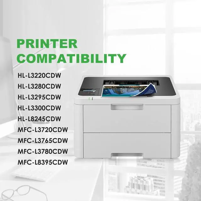 This cartridge compatible with: HL-L3220CDW, HL-L3280CDW, HL-L3295CDW, HL-L3300CDW, HL-L8245CDW, MFC-L3720CDW, MFC-L3765CDW, MFC-L3780CDW, and MFC-L8395CDW Printers