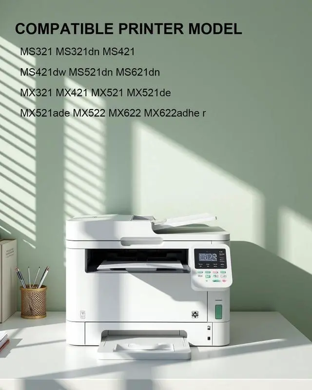 Compatible with:MS321 MS321dn MS421 MS421dw MS521dn MS621dn MX321 MX421 MX521 MX521de MX521ade MX522 MX622 MX622adhe Printer
