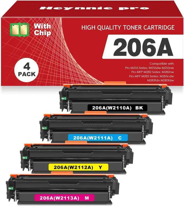 What's in the box: 4 Pack 206A (W2110A W2111A W2112A W2113A) with Chip Toner Cartridge.