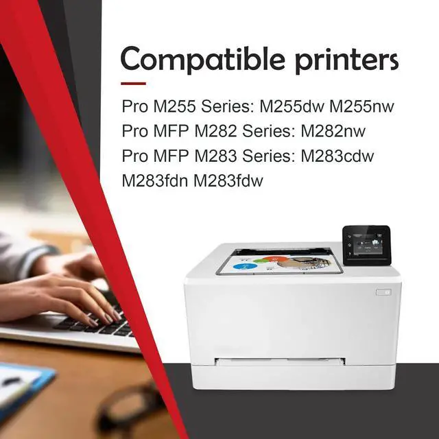 This cartridge compatible with: Color LaserJet Pro MFP 283cdw 283fdw M282nw 283fdn; Color LaserJet Pro M255dw M255nw Printer.