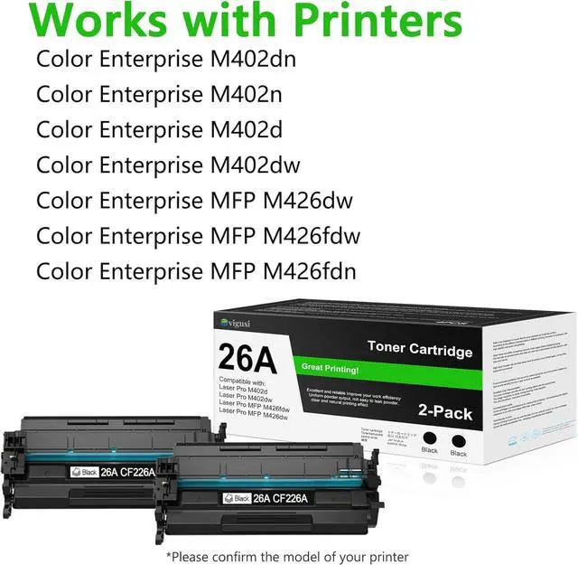 Printer Compatibility:26A toner cartridges Compatible with Pro M402dn M402d M402n M402dw; Pro MFP M426dw M426fdn M426fdw Printers