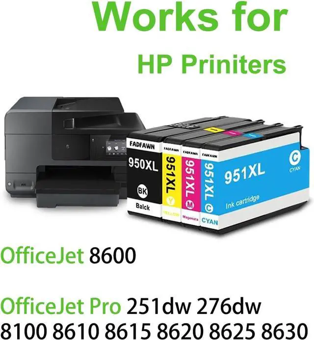 Compatible Printers - The 950XL 951XL Ink Cartridge printers is Compatible with OfficeJet 8600 printers, OfficeJet Pro 251dw 276dw 8100 8610 8615 8620 8625 8630 printers