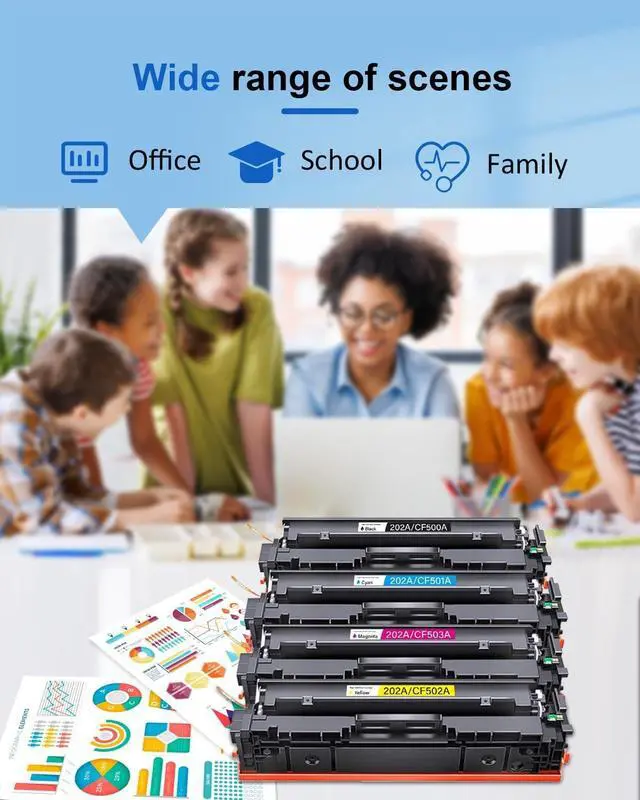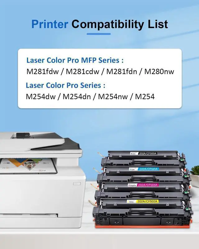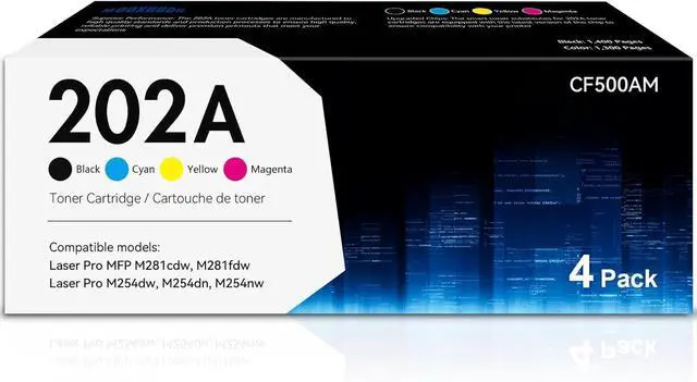 Package contents: 4 Pack 202A toner cartridges (1Black/1Cyan/1Magenta/1Yellow)