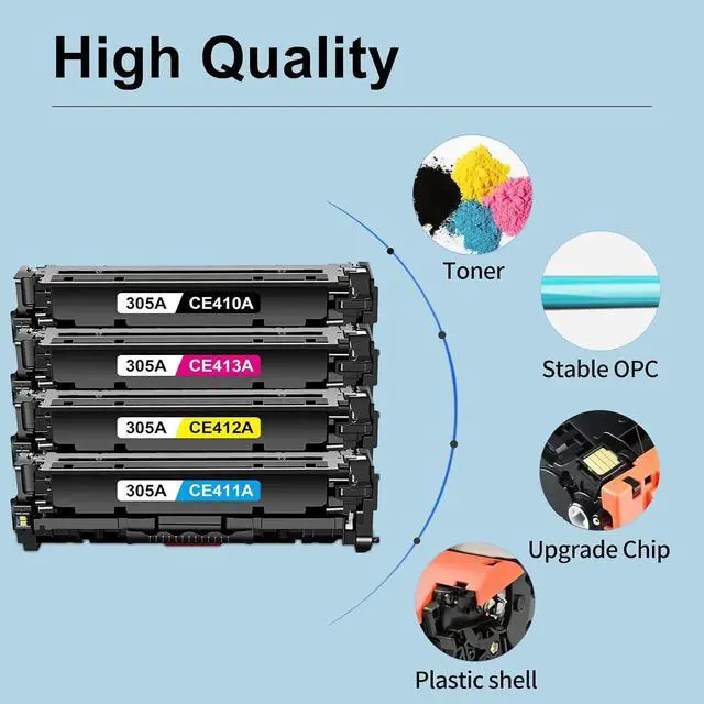 High Page Yield: Achieves up to 2,700 pages for 305A black toner cartridge and 3,100 pages for each 305A color toner cartridges at 5% coverage (Letter/A4)