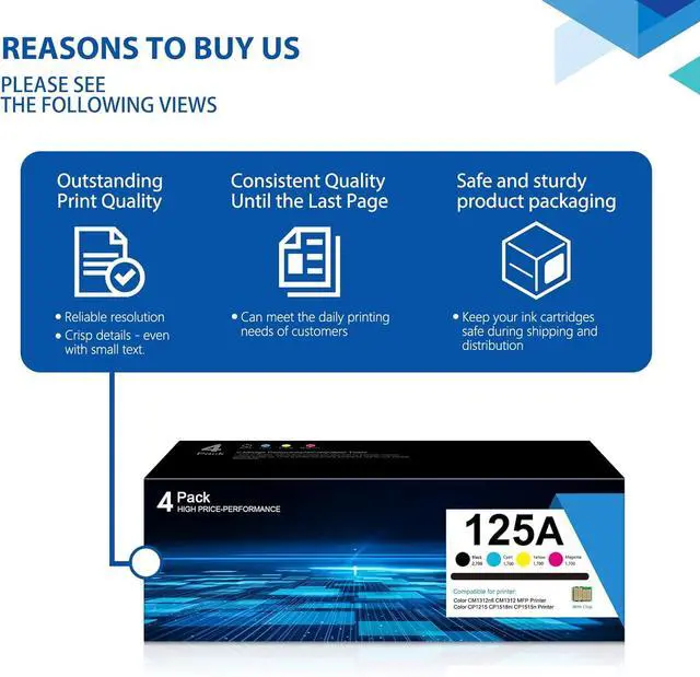 Use our 125A Toner Cartridges to avoid toner leaks or premature failures as much as possible