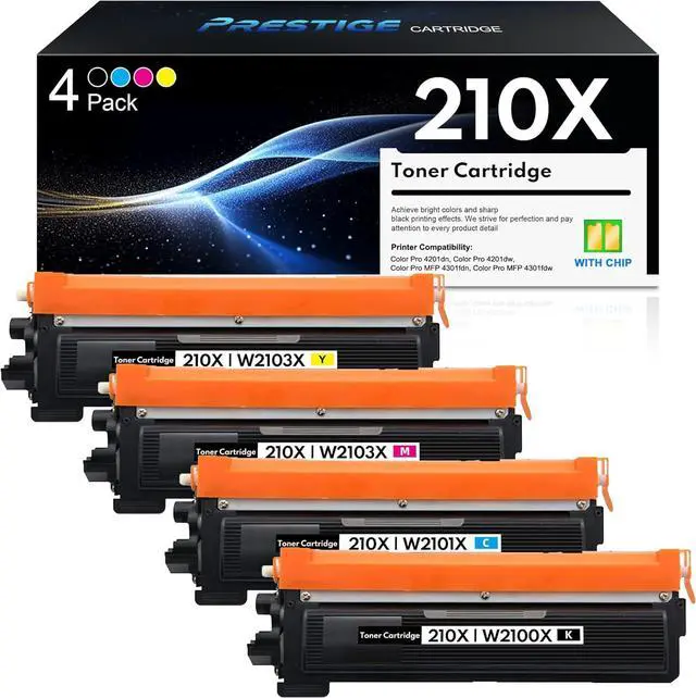 With Chip: PRESTIGE CARTRIDGE Compatible Replacement for 210X toner cartridges 4 pack contain the chips, no need to remove and install them