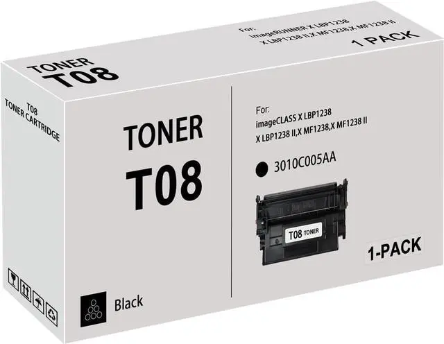 Compatible Printer Model:Canon T08 Toner for Canon imageCLSSS X LBP1238,X LBP1238 II,X MF1238,X MF1238 II Printer
