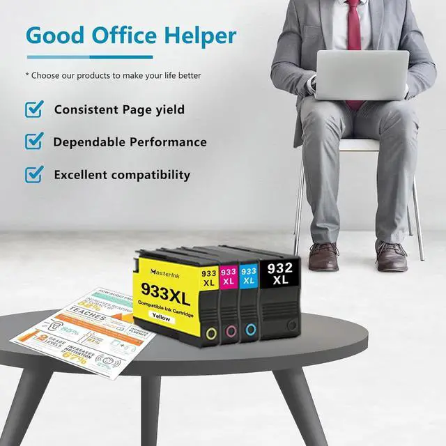 932XL 933XL cartridge combination is compatible with specific models of printers to ensure a perfect match with your printer. Suitable for high-print scenes, such as offices, schools, studios, etc.High quality print results, capable of presenting clear, colorful images and text. Large capacity design, reduce the frequency of changing ink cartridges, improve work efficiency.