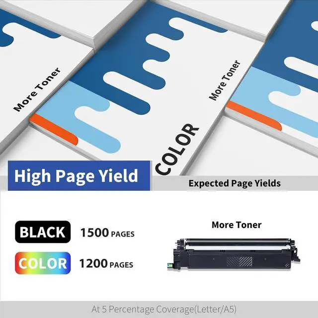 Page Yield: Up to 1,500 pages for TN229 black toner cartridge, Up to 1,200 pages for TN229 color toner cartridge (Letter/A4, at 5% coverage)
