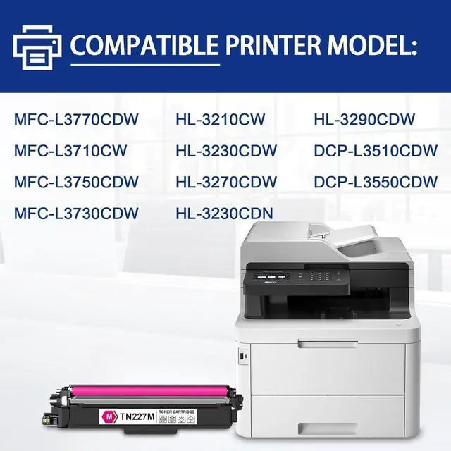 Compatibility with Printer: MFC-L3770CDW MFC-L3710CW MFC-L3750CDW MFC-L3730CDW HL-3210CW HL-3230CDW HL-3270CDW HL-3230CDN HL-3290CDW DCP-L3510CDW DCP-L3550CDW Printer