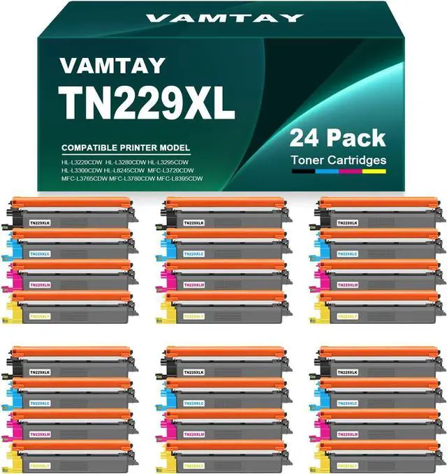 Package Contents: 24 Pack (6Black+6Cyan+6Magenta+6Yellow) TN229 TN-229 TN 229 TN 229XL Toner Cartridges