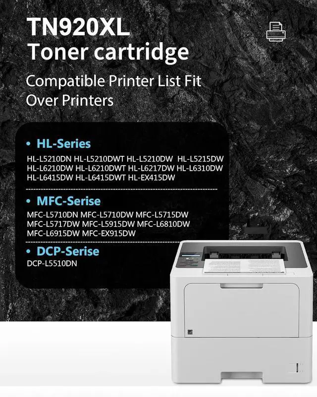 Precise Print Quality: Our TN920XL Toner Cartridge features smart chips that ensure precise toner delivery for maximum print efficiency. You'll get consistently clear and vibrant prints every time