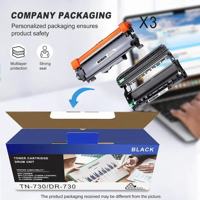 Include: 3 Pack TN730 Toner Cartridges Compatible for 3 Black TN730 and 1 Pack DR730 DRum Unit Compatible for 1 Black DR730.