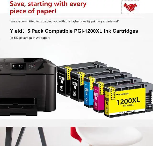 Number of sheets printed: PGI-1200XL Black Ink up to 1200 Pages,each Ink Cartridges is compatible with PGI 1200XL color ink up to 900 Pages. (At 5% coverage on A4 paper) Choosing our PGI1200XL can greatly save time to replace the ink