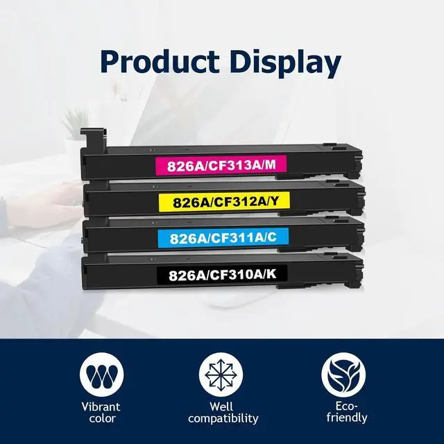 Package Contents: 4 Pack (1Black+1Cyan+1Magenta+1Yellow) 826A Toner Cartridges