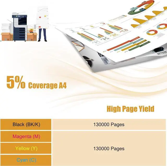 Page Yield: Up to 130000 pages per Drum Unit (Black) at 5% coverage. Up to 130000 pages per color Drum Unit (Cyan, Magenta, Yellow) at 5% coverage. These Drum Unit provides clear and vibrant printing effect, which gives you a good visual feast.