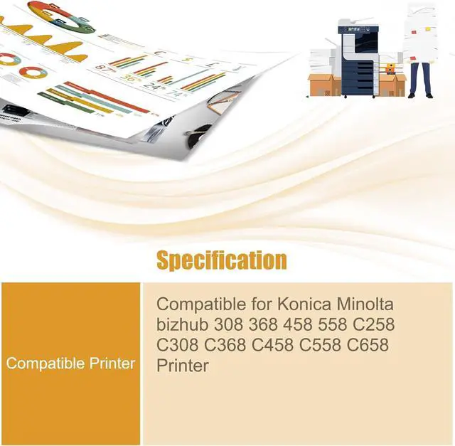 Compatible Printers Models: Compatible with Konica Minolta bizhub 308 368 458 558 C258 C308 C368 C458 C558 C658 Printers.