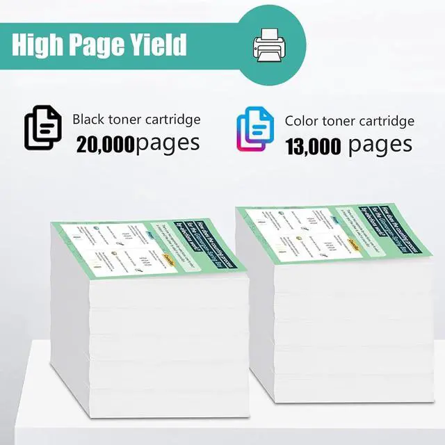 Estimated Page Yield: 20,000 pages for Black Toner and 13,000 pages for Color Toner (Cyan, Yellow, Magenta) at 5% coverage (Letter/A4).