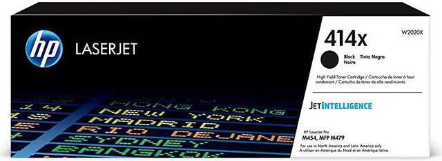 Size: One Size 414x (W2020X) Black high yield original toner cartridge. 414x toner cartridges work with printers: color LaserJet Pro M454 Series, color LaserJet Pro MFP M479 series. 414x cartridge yield (approx.