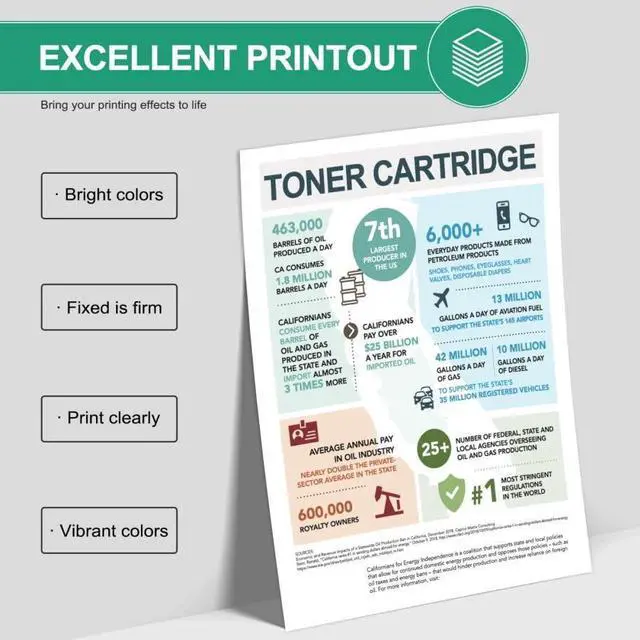 • Toner's unique formulation consistently delivers outstanding image quality, ensures long-life print system reliability and promotes superior sustainability.