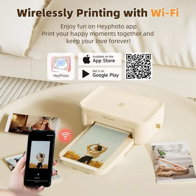User-friendly & Portable - The HPRT photo printer features Wi-Fi connectivity and is portable photo printer for iphone, Android, and smartphone. Designed for efficiency and convenience, this printer will produce dry-to-the-touch 4x6photos in an instant directly from your smartphone. You can print and share your memories from just about anyplace that you go.