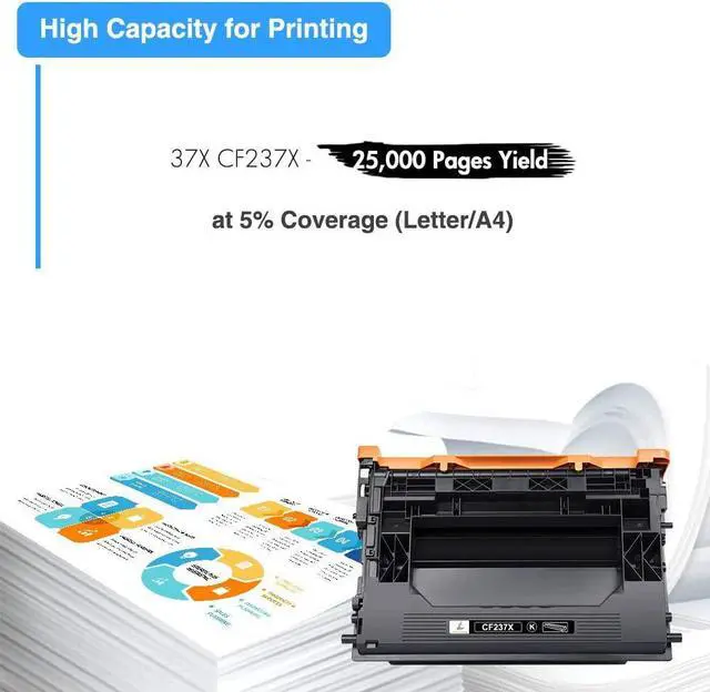 High Page Yield: 25, 000 pages at 5% coverage (Letter/A4) compatible for HP 37X CF237X black toner cartridge