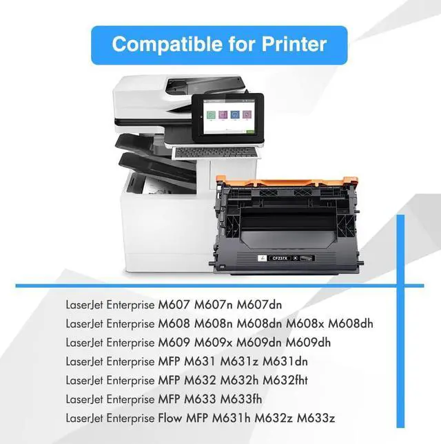 Compatible for: CF237X toner cartridge, CF237A toner cartridge, 37X toner cartridge, 37A toner cartridge, Enterprise M607 toner cartridgee, Enterprise M608 toner cartridge, CF237X 37X CF237A 37A Print Cartridge M607 M608 M609 MFP M631 M632 M633 toner