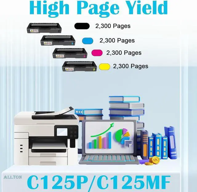 Page Yield:Up to 2300 pages per C125 P toner cartridge,at 5% coverage of A4 Letter
