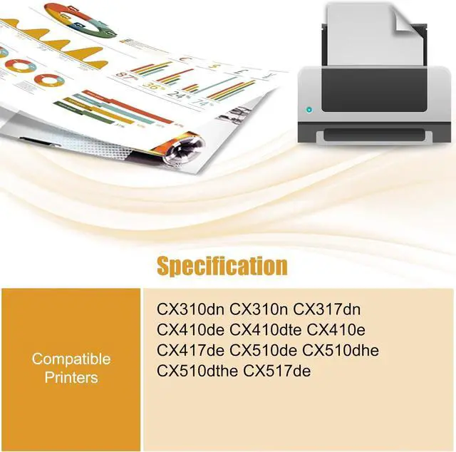 Wide compatibility, compatible for Lexmark CX310dn CX310n CX317dn CX410de CX410dte CX410e CX417de CX510de CX510dhe CX510dthe CX517de printers. Please check your printer model carefully before purchasing.