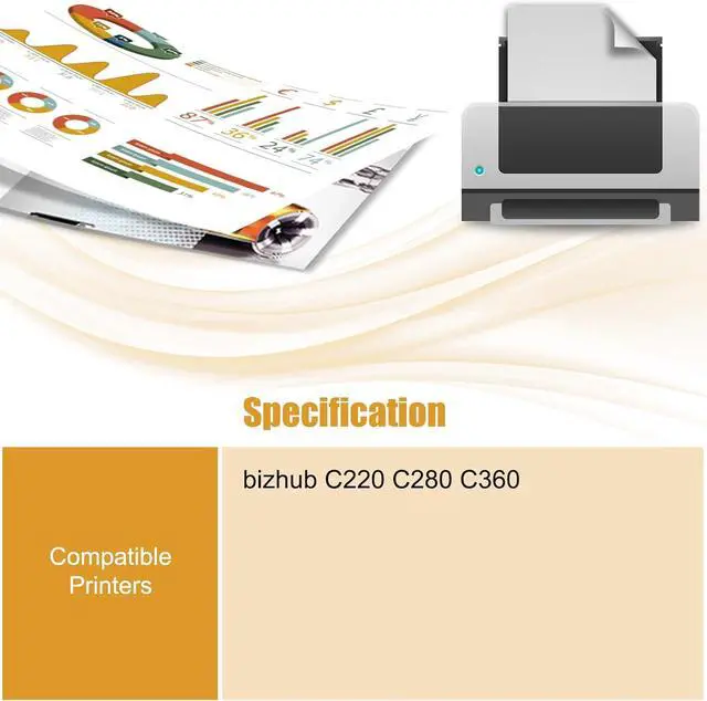 Wide compatibility, compatible for Konica Minolta bizhub C220 C280 C360 printers. Please check your printer model carefully before purchasing.