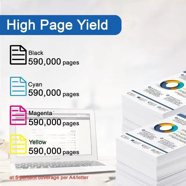 High output: up to 80,000 black pages and 80,000 color pages, 5% coverage (letter/A4 paper).