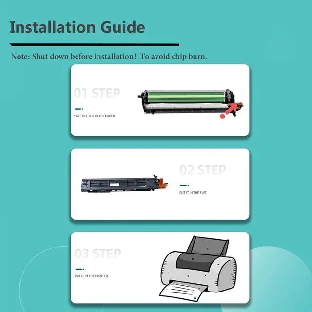 Easily InstallTake out the old drum unit in the direction of the arrowremove the protective cover of the new drum unit then insert the drum unit into the printer.