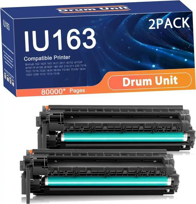 • Compatible Printers: IU163 Drum Unit compatible for BizHub 162 162F 163 1611 2011 di152 di152F di1811P di183 di183F 180 181 210 211 220 7516 7521 7216 7220 163V 7616V 7516V 7519V 183V 1020 1290 1512 1515 1518 Printer