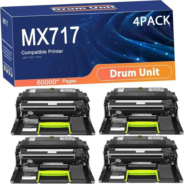 Compatible MX717 Drum Unit Replacement for Lexmark Printers to Use with MX717DE 718DE Printer,Long-Lasting and Accurate Printing 4set