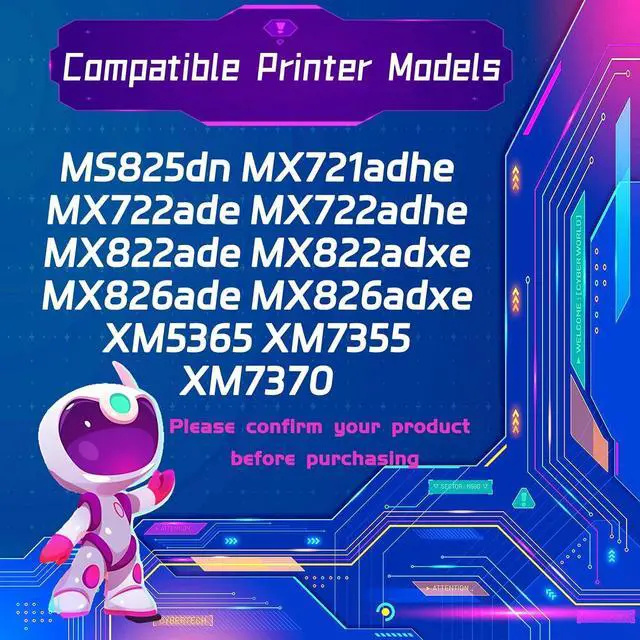 Wide compatibility: 58D0ZA0 Imaging Unit is compatible for Lexmark MS825dn MX721adhe MX722ade MX722adhe MX822ade MX822adxe MX826ade MX826adxe XM5365 XM7355 XM7370 printers, and is easy to install without additional settings. No matter what model of printer you are using, this toner cartridge can be easily matched to ensure stable output and facilitate your daily printing needs