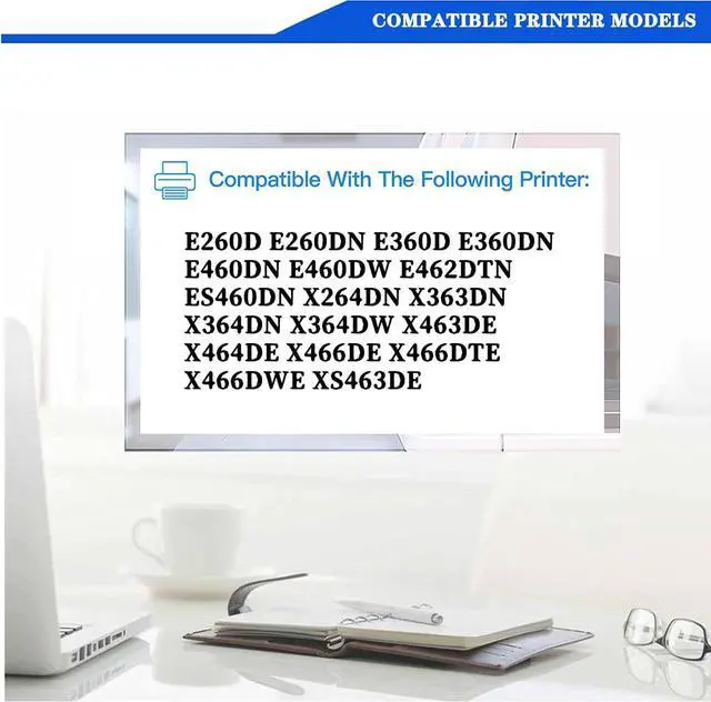 Compatible List: Compatible with E260D E260DN E360D E360DN E460DN E460DW E462DTN ES460DN X264DN X363DN X364DN X364DW X463DE X464DE X466DE X466DTE X466DWE XS463DE Printer