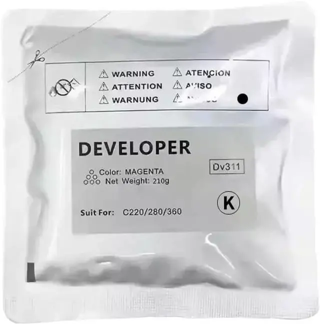 1PC DV311 Developer Powder compatible with C220, C360, C280 models. Each bag contains 210g of powder in four colors.