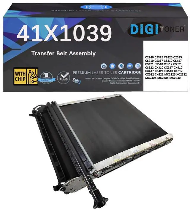 Compatible Printers Replacement for Lexmark C2240 C2325 C2425 C2535 CS310 CS317 CS410 CS417 CS421 CS510 CS517 CS521 CS622 CX310 CX317 CX410 CX417 CX421 CX510 CX517 CX522 CX622 MC2325 MC2425 MC2535 MC2640 XC2132 Transfer Belt Assembly Compatible with 41X1039 Printers.