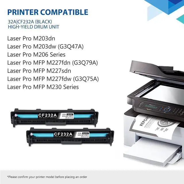 4.2 out of 5 stars 32A Imaging Drum Black Extra High-Yield 2-Pack | 32A CF232A Imaging Drum Replacement for HP 32A Drum Unit CF232A Compatible with Laser Pro M203dn M203dw MFP M227fdn M227sdn M227fdw Printer | CF232A