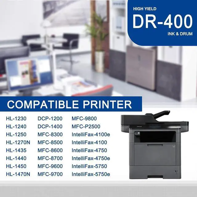 5.0 out of 5 stars 1 Pack DR400 BK Drum Unit High Yield Compatible DR400 Replacement for Brother DCP-1200 1400 HL-1230 1240 1250 1470N MFC-8300 8500 9600 P2500 IntelliFax-4100e 4100 4750 5750e Printer